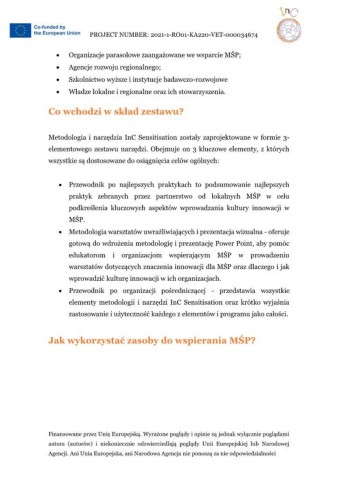 Metodologia i narzędzia InC Sensitisation zostały zaprojektowane w formie 3-