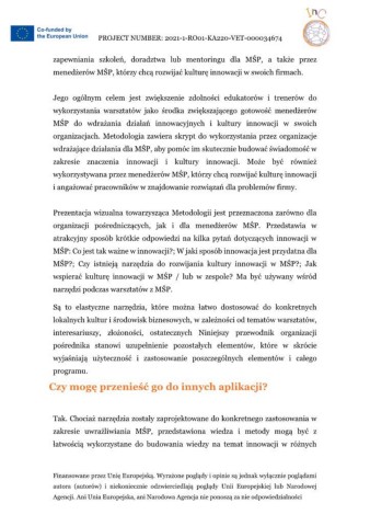 wspierać kulturę innowacji w MŚP / lub w zespole? Ma być używany wśród